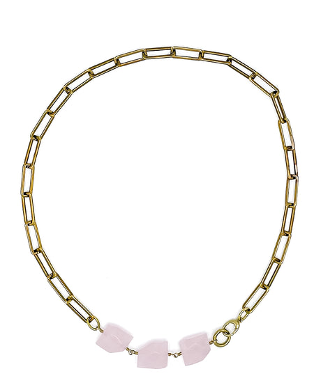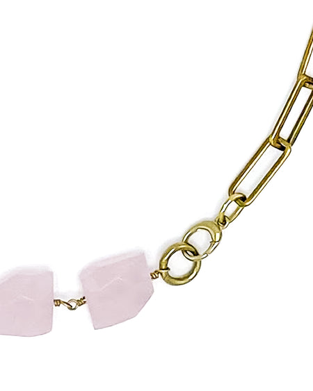 Rose Quartz Necklace Brass Paper Clip Chain
